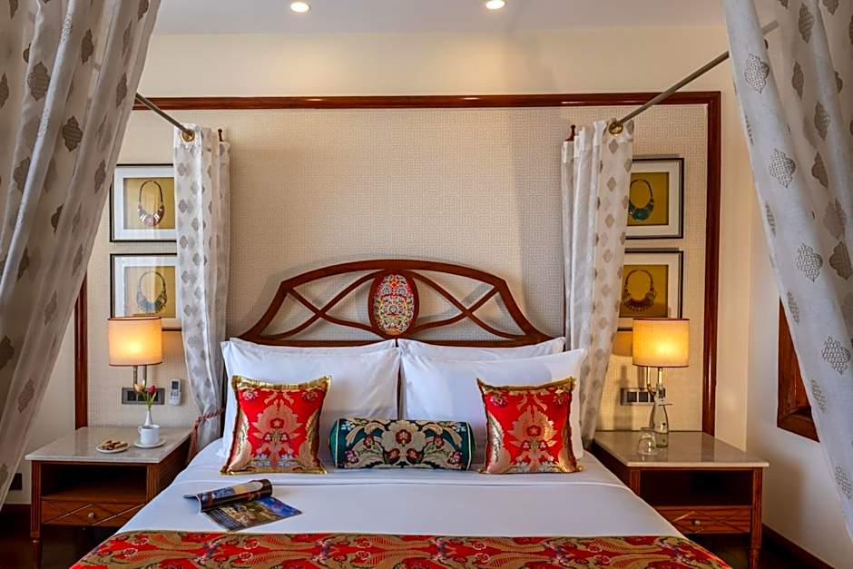 This room offers air purifiers, central air conditioning, washroom-floor heating and Italian marble with 4 fixture modern fittings stall and amenities in the bathroom. Added to this is the alluring charm of the elegant teak wood cornices, furnishings in jewel-toned brocades embossed with floral designs and geometric motifs.
